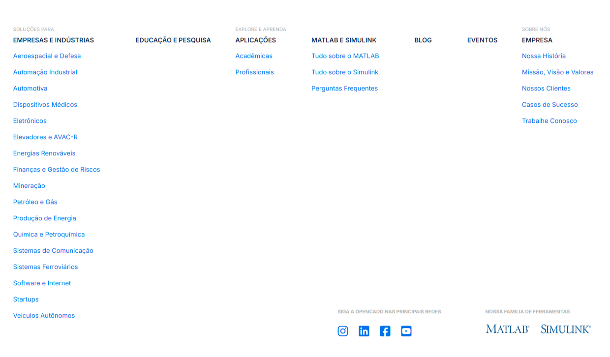 Todas as páginas pilar do site também foram renovadas, com conteúdos novos, montados sempre em conjunto com a equipe da OPENCADD e trazendo os benefícios das soluções apontados tanto pelo time quanto pela própria MathWorks em seus materiais oficiais, traduzindo não só para o português, mas para uma linguagem acessível e clara.